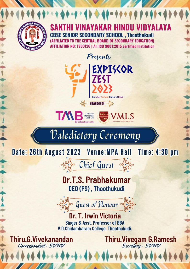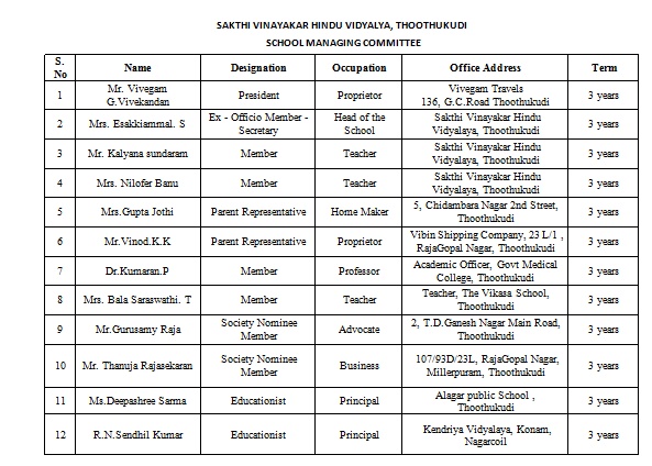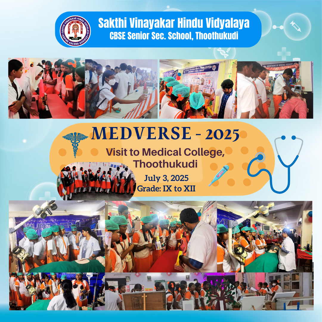 Sakthi Vinayakar Hindu Vidyalaya is a pioneer in CBSE education in Thoothukudi. The Trust is comprised of legends from different walks of life. The School is unique in its own way instilling spirituality in young minds. We have a team of dedicated teachers, supportive parents, disciplined students and well – wishers.